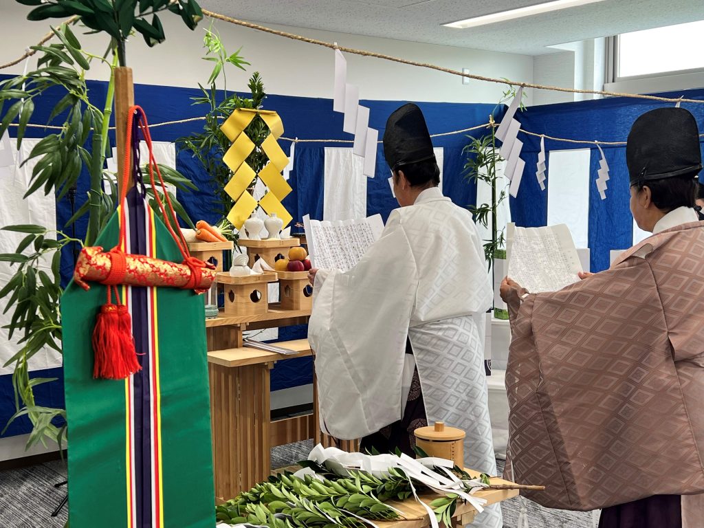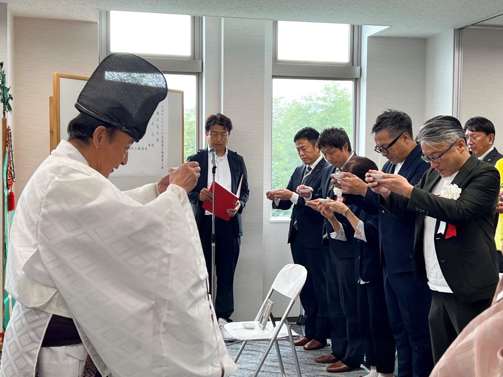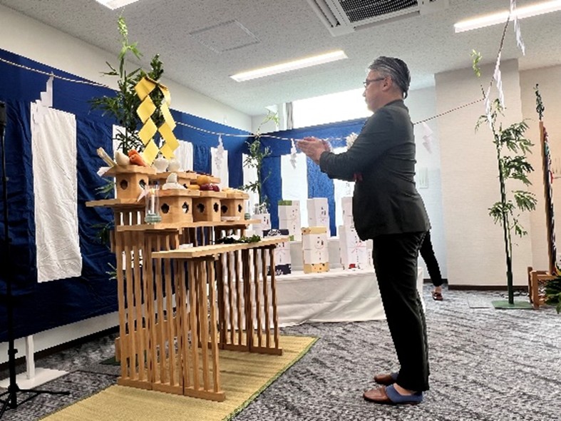 神事では、これまでの工事の安全に感謝を捧げるとともに、尾長島工場の新たな歴史の始まりを祈念いたしました。